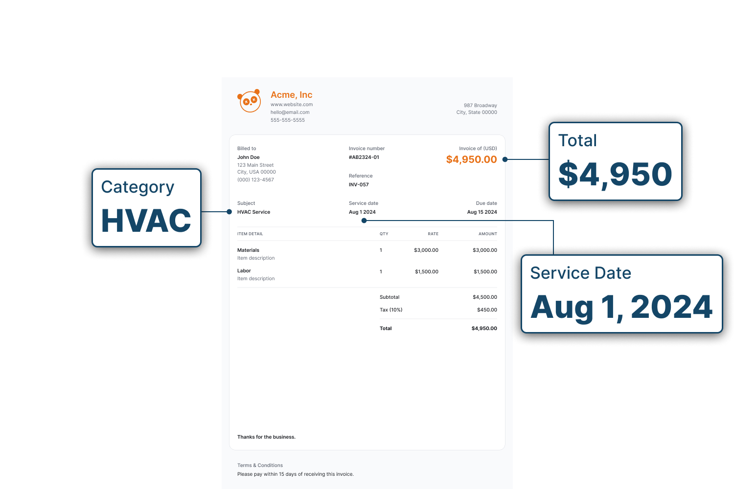 My Homey automatically pulls out the important details such as dates, costs, contractors, and work performed. Everything gets organized without the busywork.